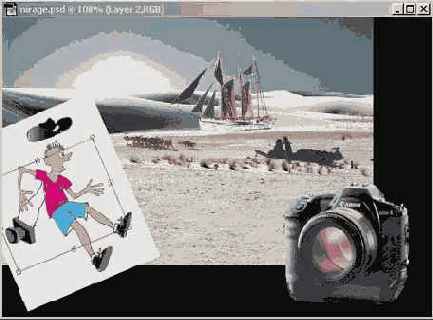 2. Переместите слой Background документа surprise tif в документ mirage psd точно так же, как при работе с документом camera.jpg.